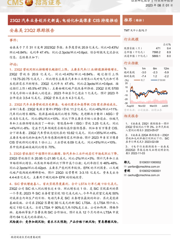 【海通证券】【20230801】安森美23Q2跟踪报告-23Q2汽车业务创历史新高,电动化和高像素CIS持续推动-12页 行业研究