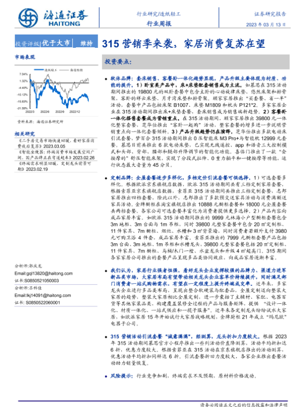 【海通证券】【20230313】20230313-海通证券-造纸轻工行业周报:315营销季来袭,家居消费复苏在望-11页 行业研究