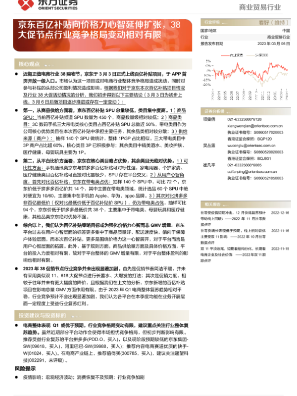 【东方证券】【20230306】商业贸易行业动态跟踪:京东百亿补贴向价格力心智延伸扩张,38大促节点行业竞争格局变动相对有限-12页 行业研究