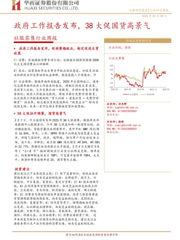 【华西证券】【20250309】社服零售行业周报:政府工作报告发布,38大促国货高景气-15页 行业研究
