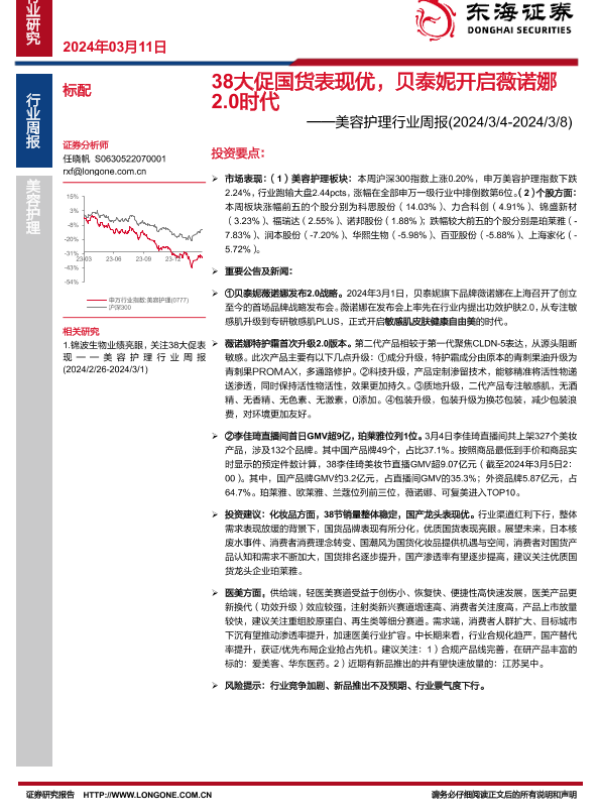 【东海证券】【20240311】38大促国货表现优,贝泰妮开启薇诺娜2.0时代-10页 行业研究