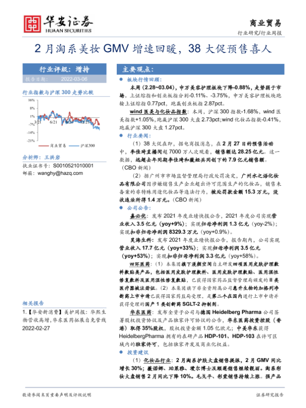 【华安证券】【20220306】2月淘系美妆GMV增速回暖,38大促预售喜人-18页 行业研究