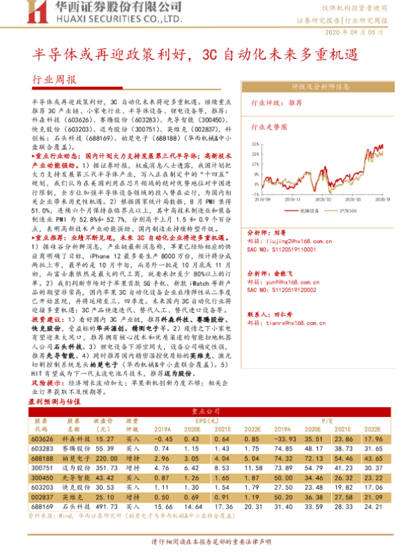 【华西证券】【20200905】20200905-华西证券-机械设备行业周报:半导体或再迎政策利好,3C自动化未来多重机遇-20页 行业研究