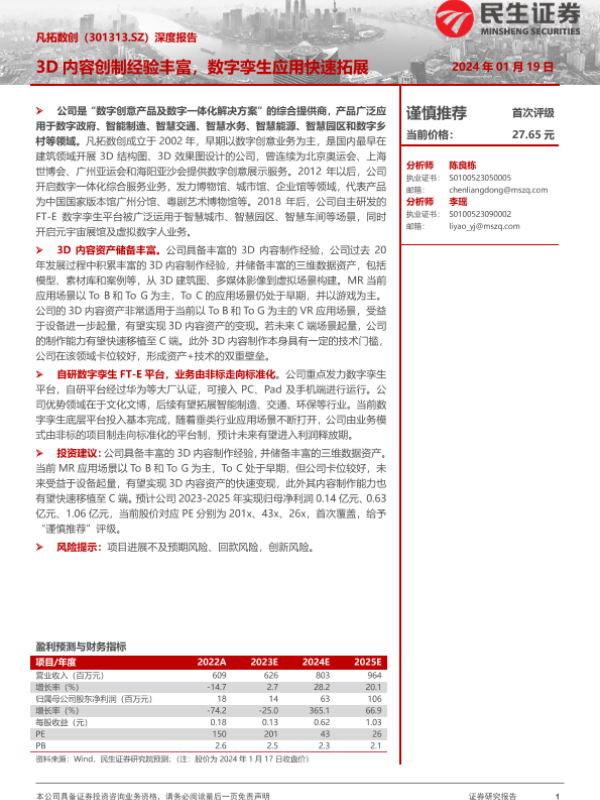 【民生证券】【20240119】凡拓数创-301313.SZ-深度报告:3D内容创制经验丰富,数字孪生应用快速拓展-31页 行业研究