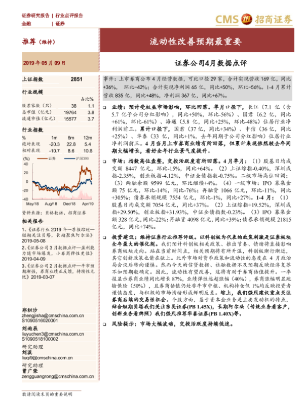 【海通证券】【20190509】证券公司4月数据点评:流动性改善预期最重要-3页 行业研究