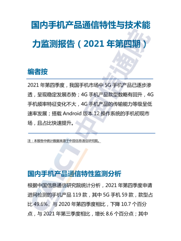 【中国信息通信研究院】【2021】国内手机产品通信特性与技术能力监测报告(2021年第四期)-7页 行业研究