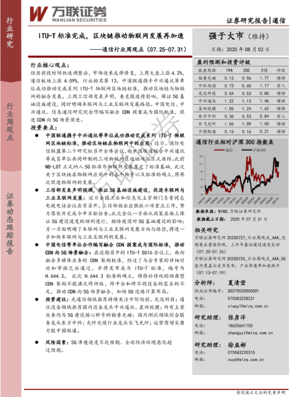 【万联证券】【20200802】20200802-万联证券-通信行业周观点:ITU-T标准完成,区块链推动物联网发展再加速-13页 行业研究