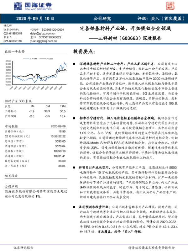【国海证券】【20200910】20200910-国海证券-三祥新材-603663.SH-深度报告:完善锆基材料产业链,开拓镁铝合金领域-21页 行业研究
