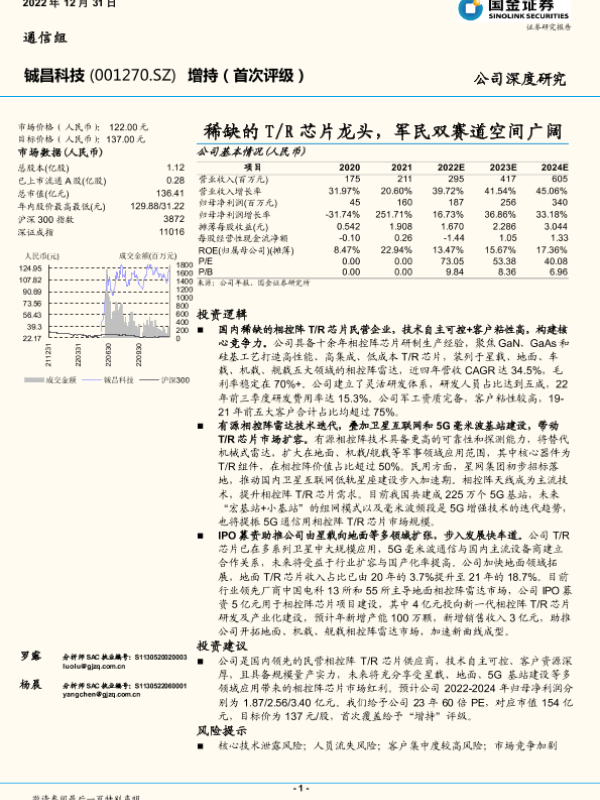 【国金证券】【20221231】深度报告-20221231-国金证券-铖昌科技-001270.SZ-稀缺的T_R芯片龙头_军民双赛道空间广阔-24页 行业研究