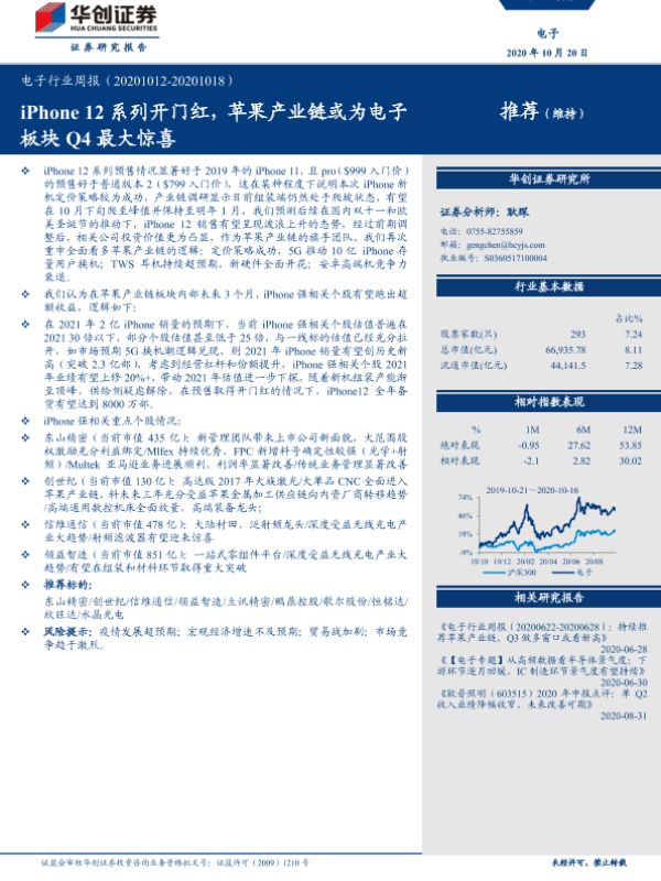 【华创证券】【20201020】电子行业周报:iPhone 12系列开门红,苹果产业链或为电子板块Q4最大惊喜-20页 行业研究