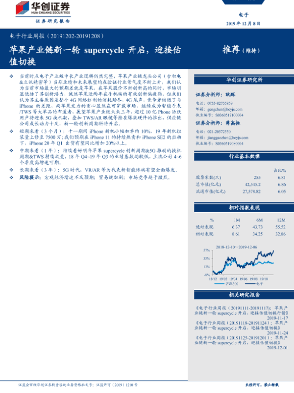 【华创证券】【20191208】电子行业周报:苹果产业链新一轮supercycle开启,迎接估值切换-17页 行业研究