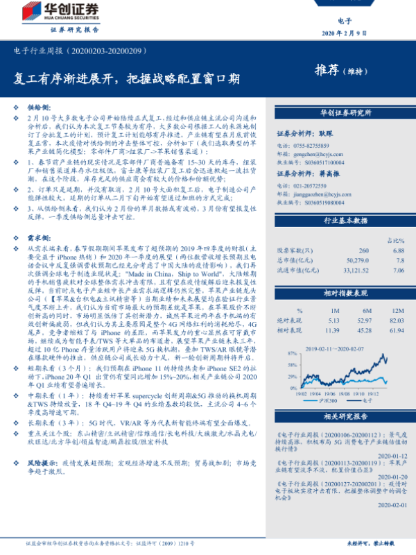 【华创证券】【20200209】20200209-华创证券-电子行业周报:复工有序渐进展开,把握战略配置窗口期-16页 行业研究