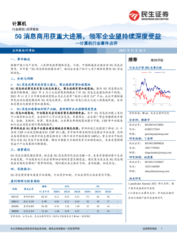【民生证券】【20211110】20211110-民生证券-计算机行业事件点评:5G消息商用获重大进展,领军企业望持续深度受益-3页 行业研究