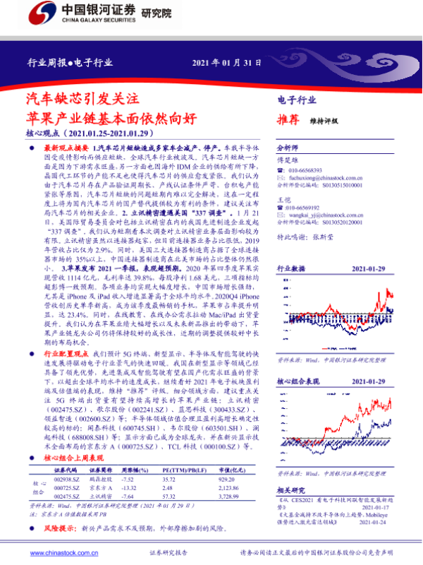 【银河证券】【20210131】电子行业:汽车缺芯引发关注,苹果产业链基本面依然向好-25页 行业研究