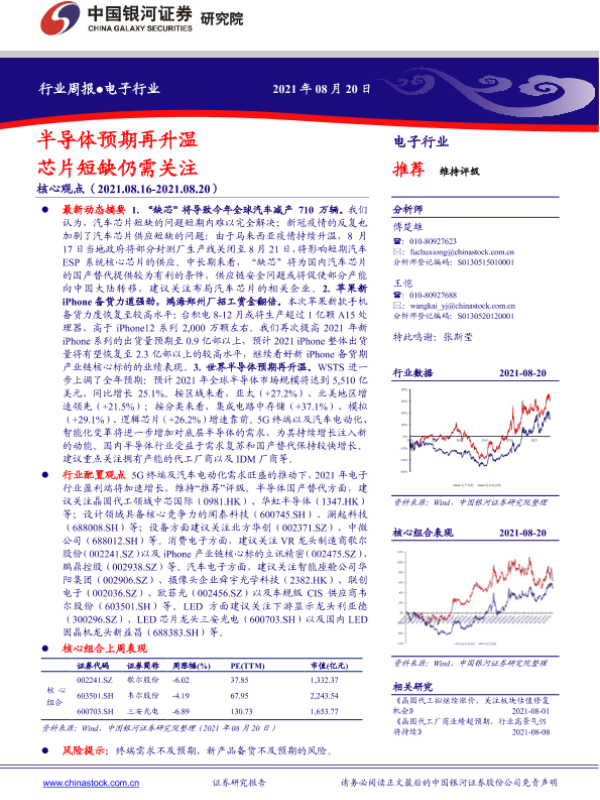 【银河证券】【20210820】20210820-中国银河-电子行业周报:半导体预期再升温 芯片短缺仍需关注-30页 行业研究