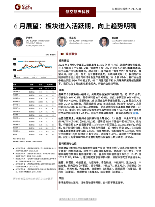 【中金公司】【20210531】20210531-中金公司-航空航天科技:6月展望:板块进入活跃期,向上趋势明确-20页 行业研究