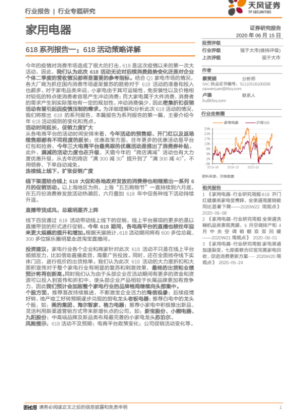 【天风证券】【20200615】20200615-天风证券-家用电器618系列报告一:618活动策略详解-8页 行业研究