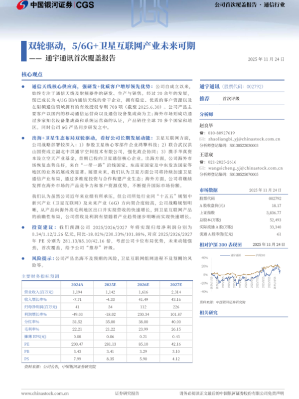 【银河证券】【202511】双轮驱动,5/6G+卫星互联网产业未来可期-通宇通讯首次覆盖报告-13页 证券期货研究报告