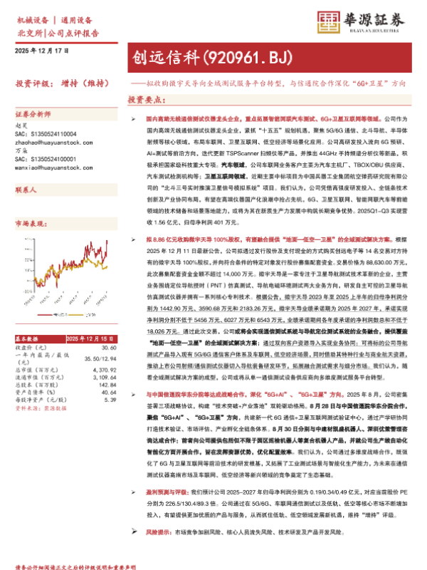 【华源证券】【202512】创远信科-拟收购微宇天导向全域测试服务平台转型,与信通院合作深化“6G+卫星”方向-4页 证券期货研究报告