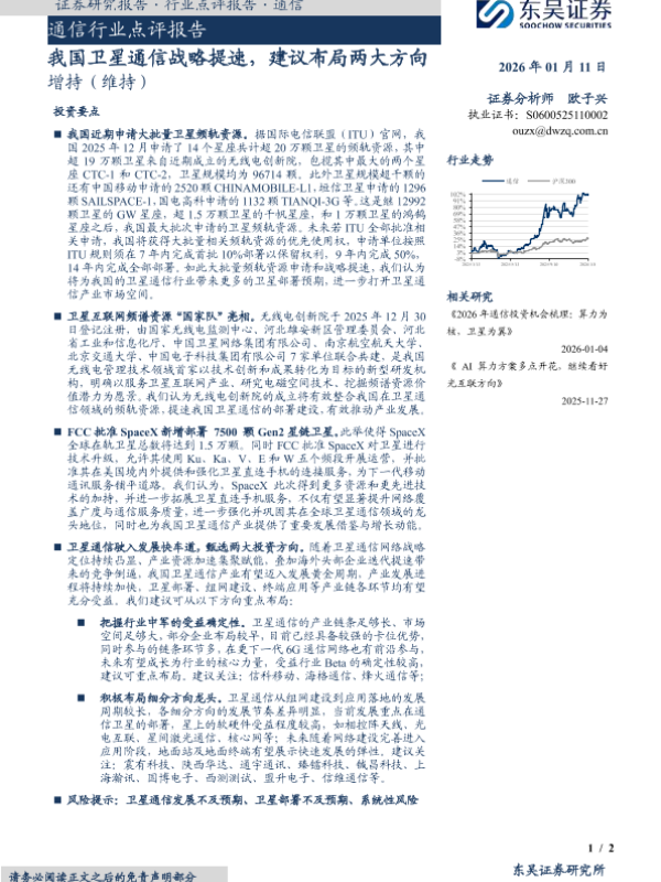 【东吴证券】【202601】我国卫星通信战略提速,建议布局两大方向-2页 证券期货研究报告