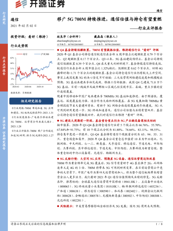 【开源证券】【20210202】通信行业点评报告:移广5G700M持续推进,通信估值与持仓有望重燃-8页 行业研究