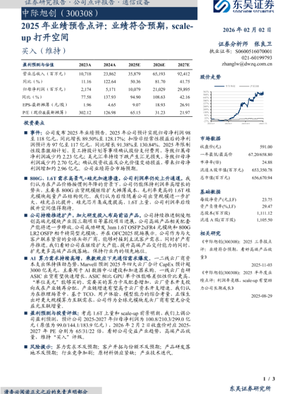 【东吴证券】【202602】2025年业绩预告点评:业绩符合预期,scale-up打开空间-3页 证券期货研究报告