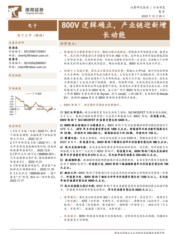 【德邦证券】【20221226】电子行业:800V逻辑确立,产业链迎新增长动能-31页 行业研究