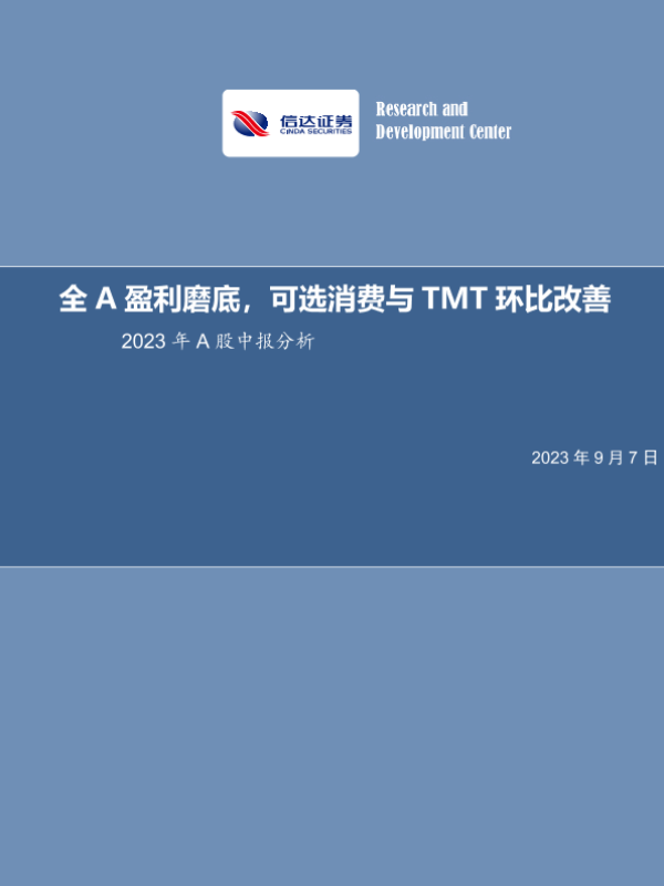 【信达证券】【20230907】2023年A股中报分析:全A盈利磨底,可选消费与TMT环比改善-29页 行业研究