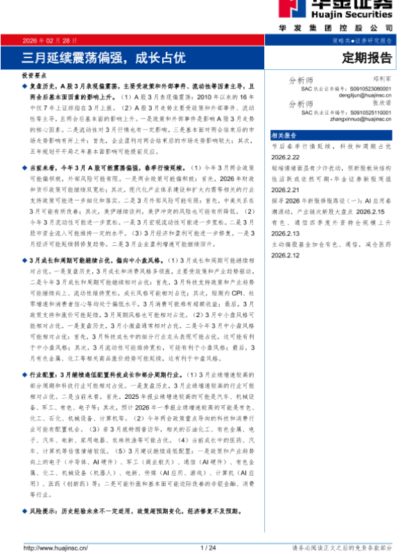 【华金证券】【202602】三月延续震荡偏强,成长占优-24页 证券期货研究报告