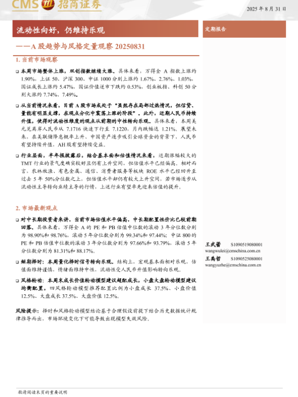 【海通证券】【202508】A股趋势与风格定量观察 20250831-11页 证券期货研究报告