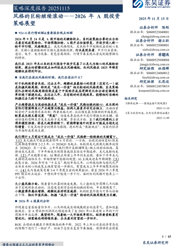 【东吴证券】【202511】风格的巨轮继续滚动——2026年A股投资策略展望-43页 证券期货研究报告