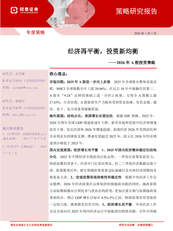 【银泰证券】【202601】经济再平衡,投资新均衡——2026年 A股投资策略-28页 证券期货研究报告