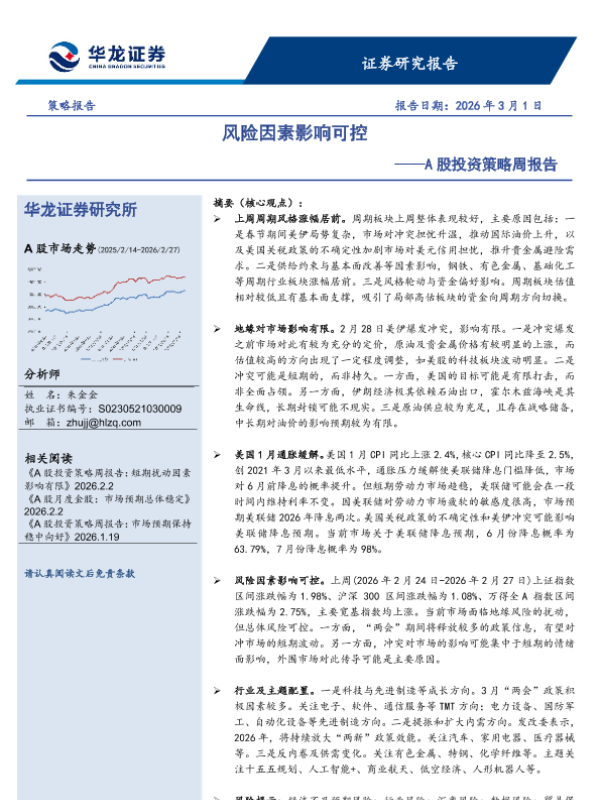 【华龙证券】【202602】风险因素影响可控——A股投资策略周报告-13页 证券期货研究报告