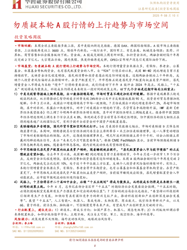 【华西证券】【20250810】投资策略周报:勿质疑本轮A股行情的上行趋势与市场空间-8页 证券期货研究报告