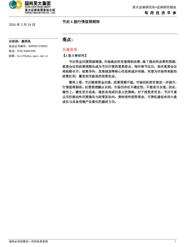 【英大证券】【202602】节后 A股行情值得期待-5页 证券期货研究报告