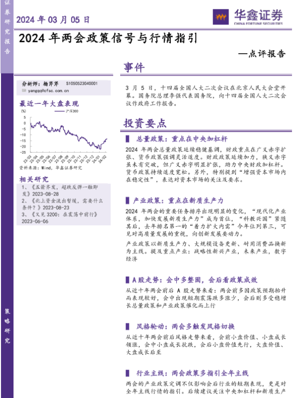 【华鑫证券】【20240305】2024年两会政策信号与行情指引-13页 行业研究