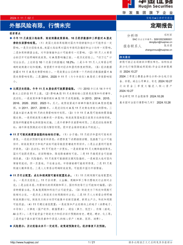 【华金证券】【20241102】定期报告:外部风险有限,行情未完-21页 行业研究