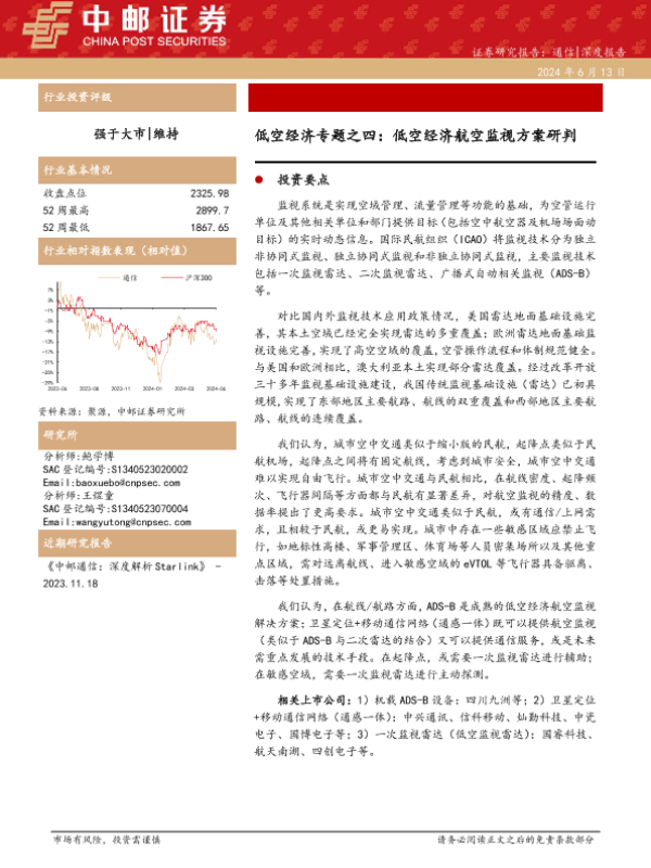 【中邮证券】【20240617】低空经济专题之四:低空经济航空监视方案研判-20页 行业研究