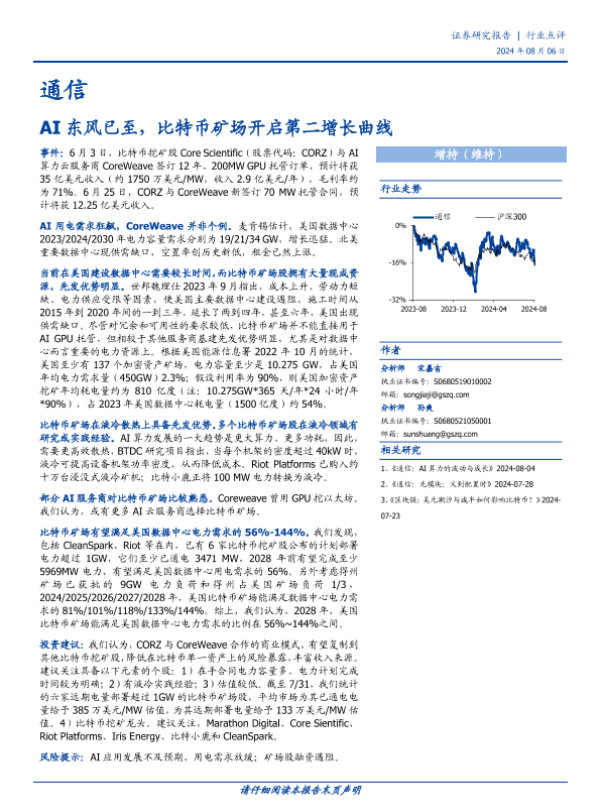 【国盛证券】【20240806】通信行业点评:AI东风已至,比特币矿场开启第二增长曲线-18页 行业研究