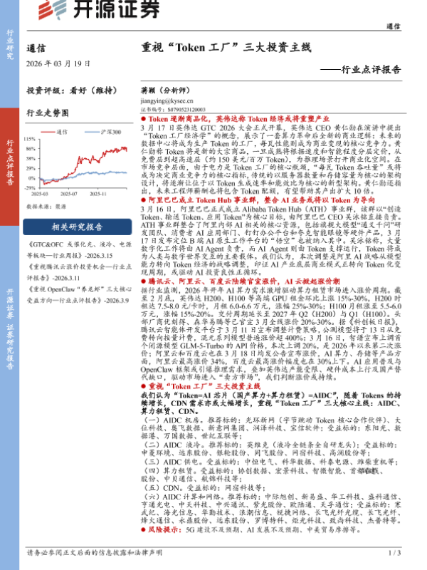 【开源证券】【202603】重视“Token工厂”三大投资主线——行业点评报告-3页 证券期货研究报告