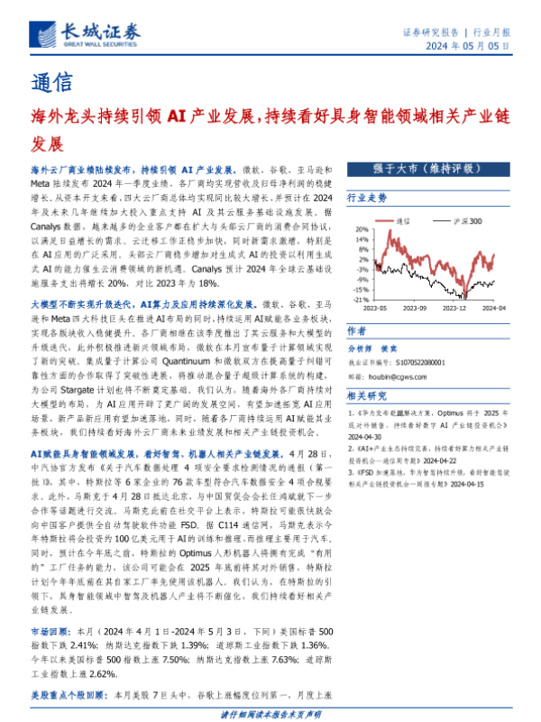 【长城证券】【20240505】通信行业月报:海外龙头持续引领AI产业发展,持续看好具身智能领域相关产业链发展-19页 行业研究
