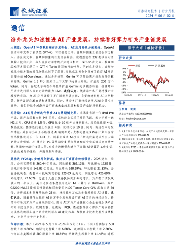 【长城证券】【20240602】通信行业月报:海外龙头加速推进AI产业发展,持续看好算力相关产业链发展-17页 行业研究