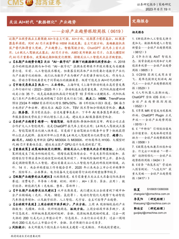 【海通证券】【20230619】全球产业趋势跟踪周报:关注AI+时代“数据锂化”产业趋势-24页 行业研究