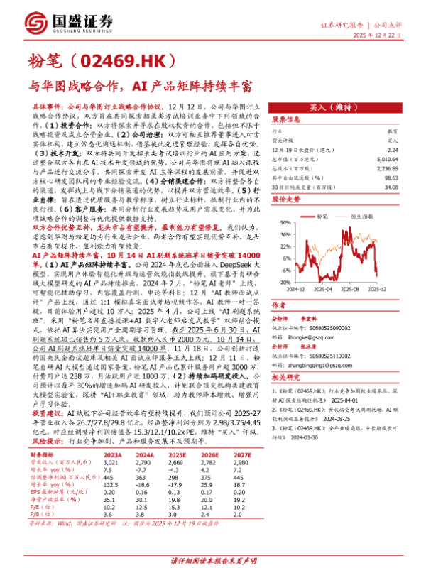 【国盛证券】【2025】粉笔(02469.HK):与华图战略合作,AI产品矩阵持续丰富-3页 证券期货研究报告