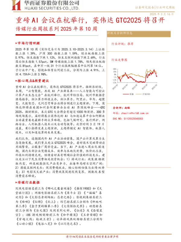 【华西证券】【20250316】2025年第10周:重磅AI会议在杭举行,英伟达GTC2025将召开-35页 行业研究