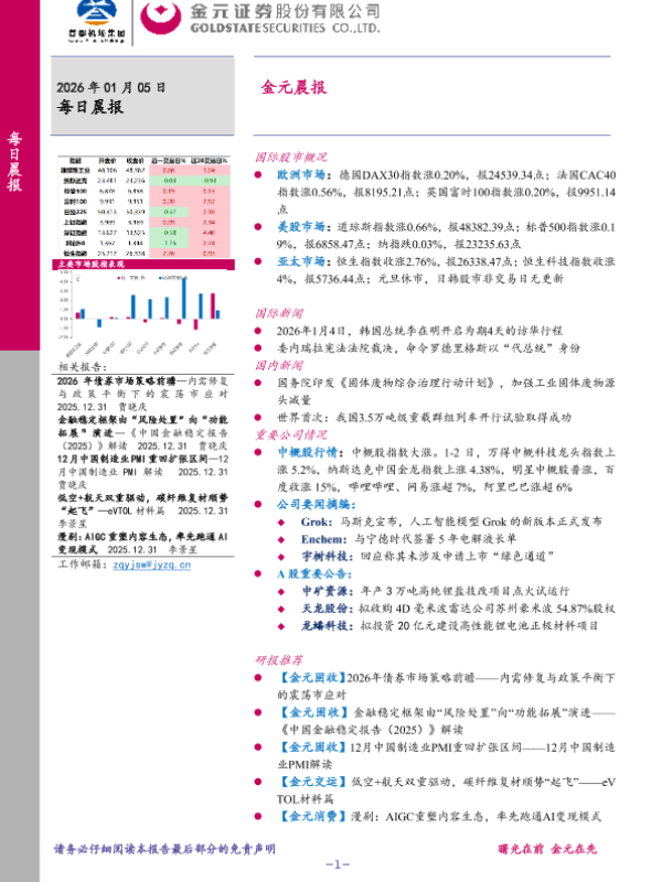 【金元证券】【202601】2026年 01月 05日每日晨报-8页 证券期货研究报告