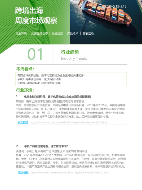 【艾瑞咨询】【20250519】跨境出海行业周度市场观察-6页 行业研究