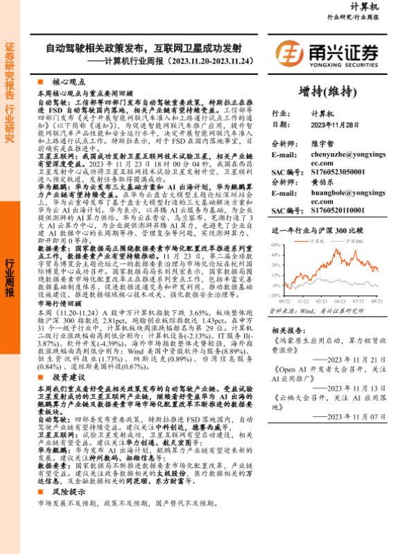 【甬兴证券】【20231128】20231128-甬兴证券-计算机行业周报:自动驾驶相关政策发布,互联网卫星成功发射-12页 行业研究