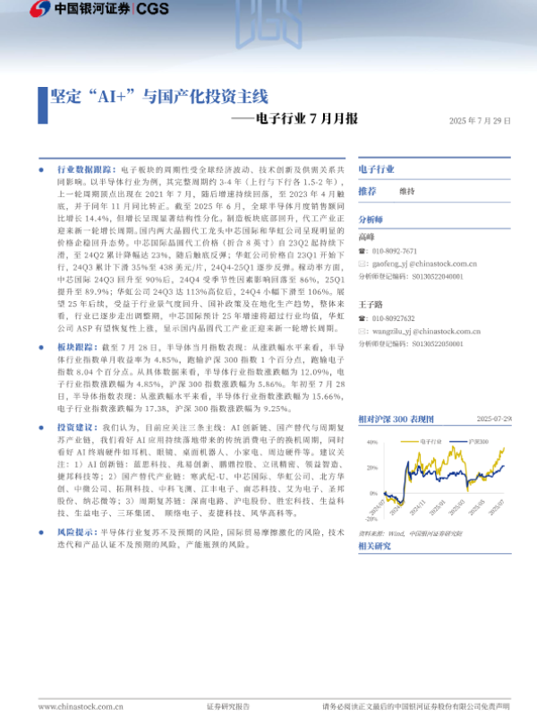 【银河证券】【202507】电子行业7月月报:坚定"AI+"与国产化投资主线-11页 证券期货研究报告