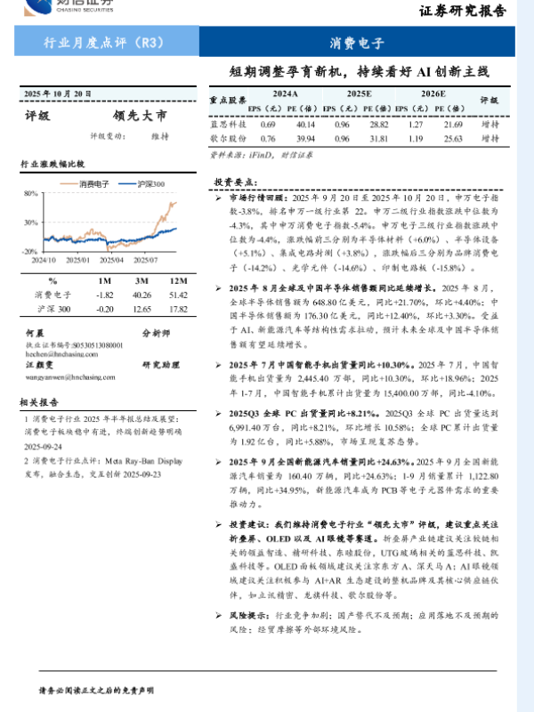 【财信证券】【202510】消费电子行业月度点评:短期调整孕育新机,持续看好AI创新主线-11页 证券期货研究报告
